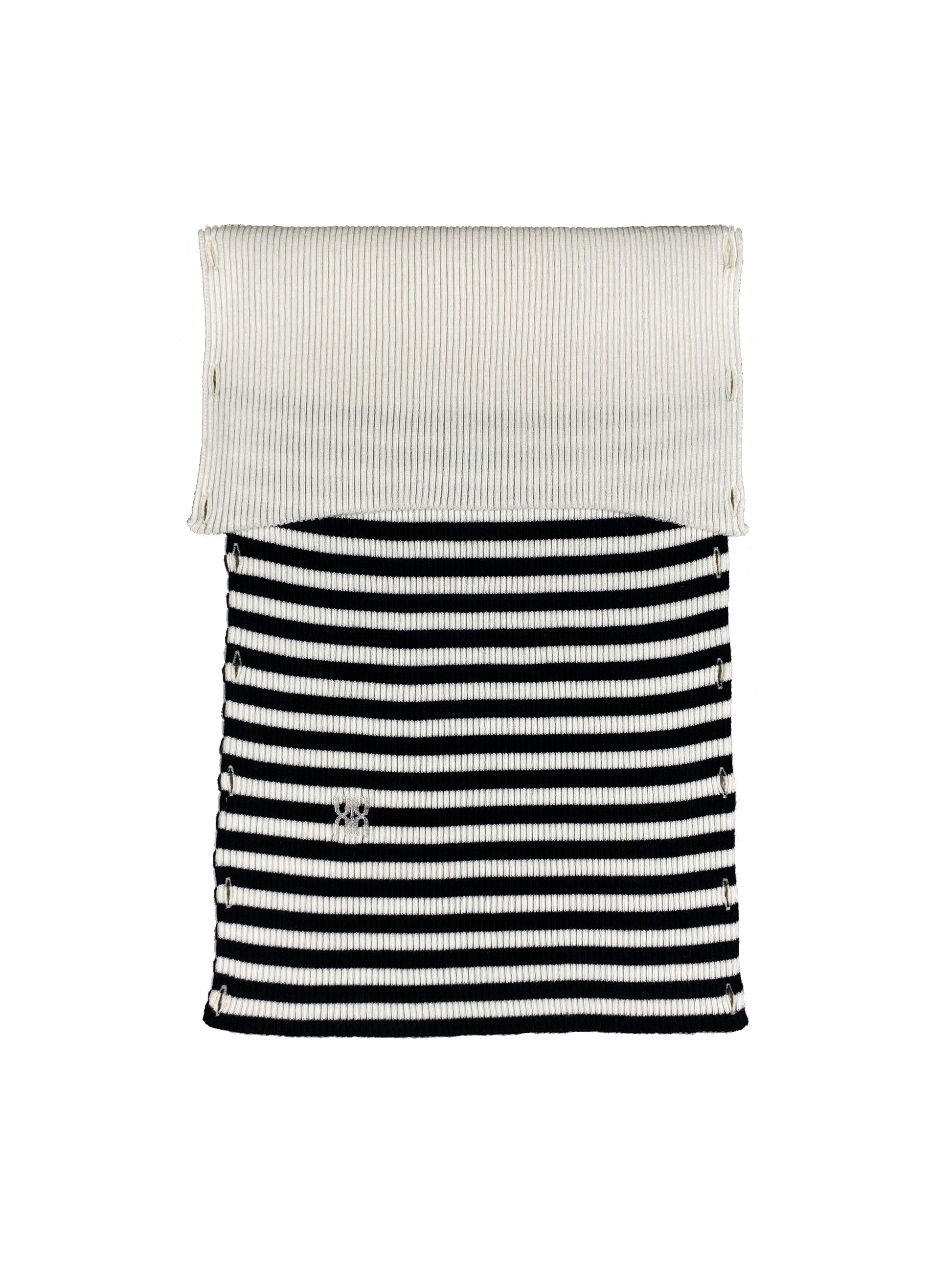 Devant rayé écru et noir, compatible avec les dos des pulls Céphée.